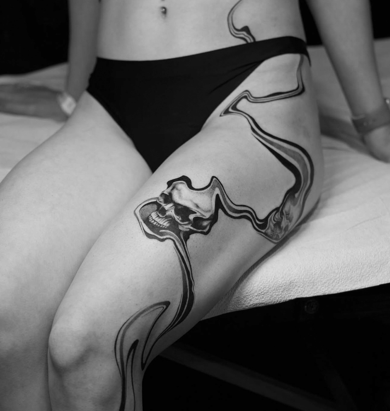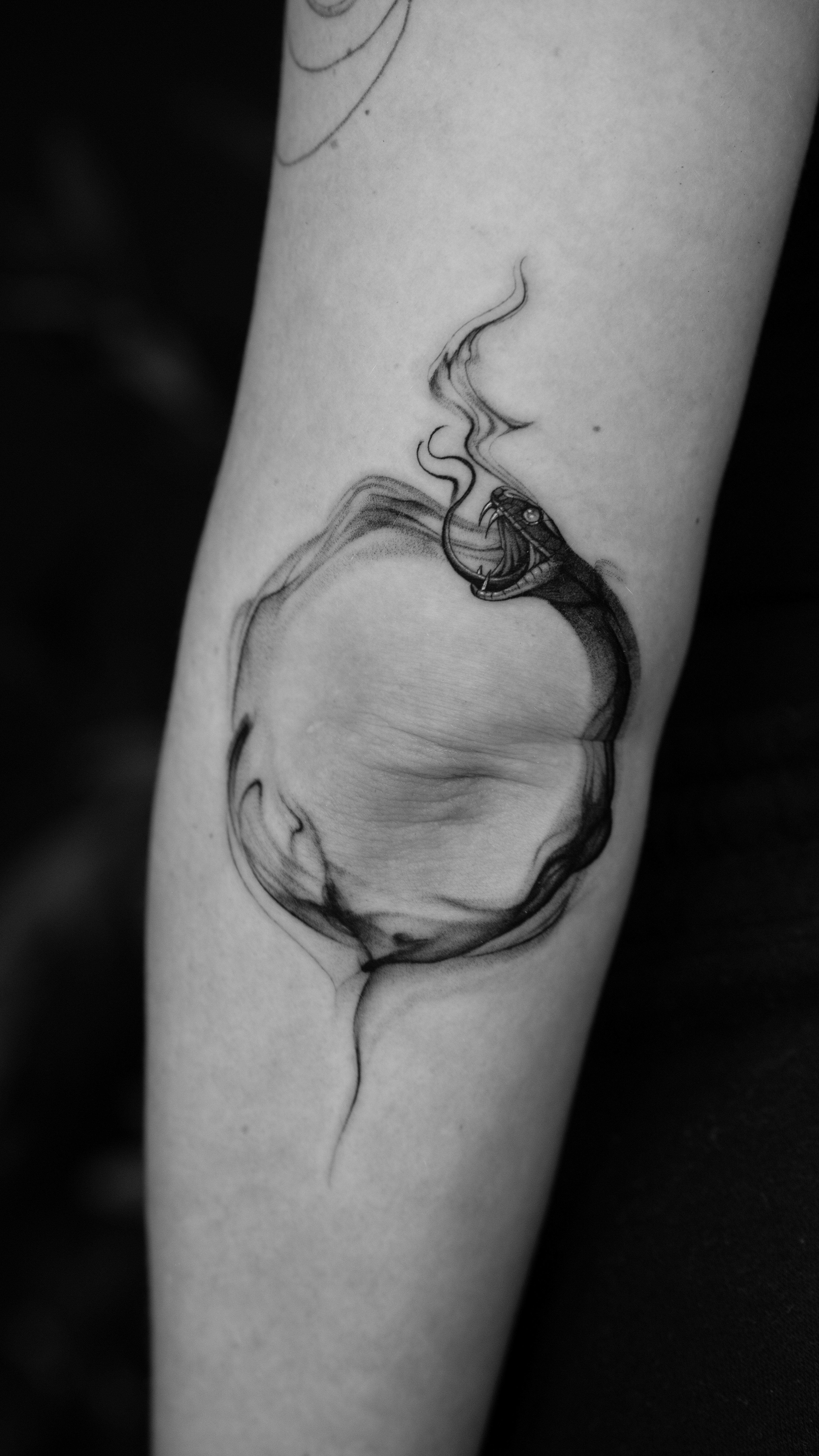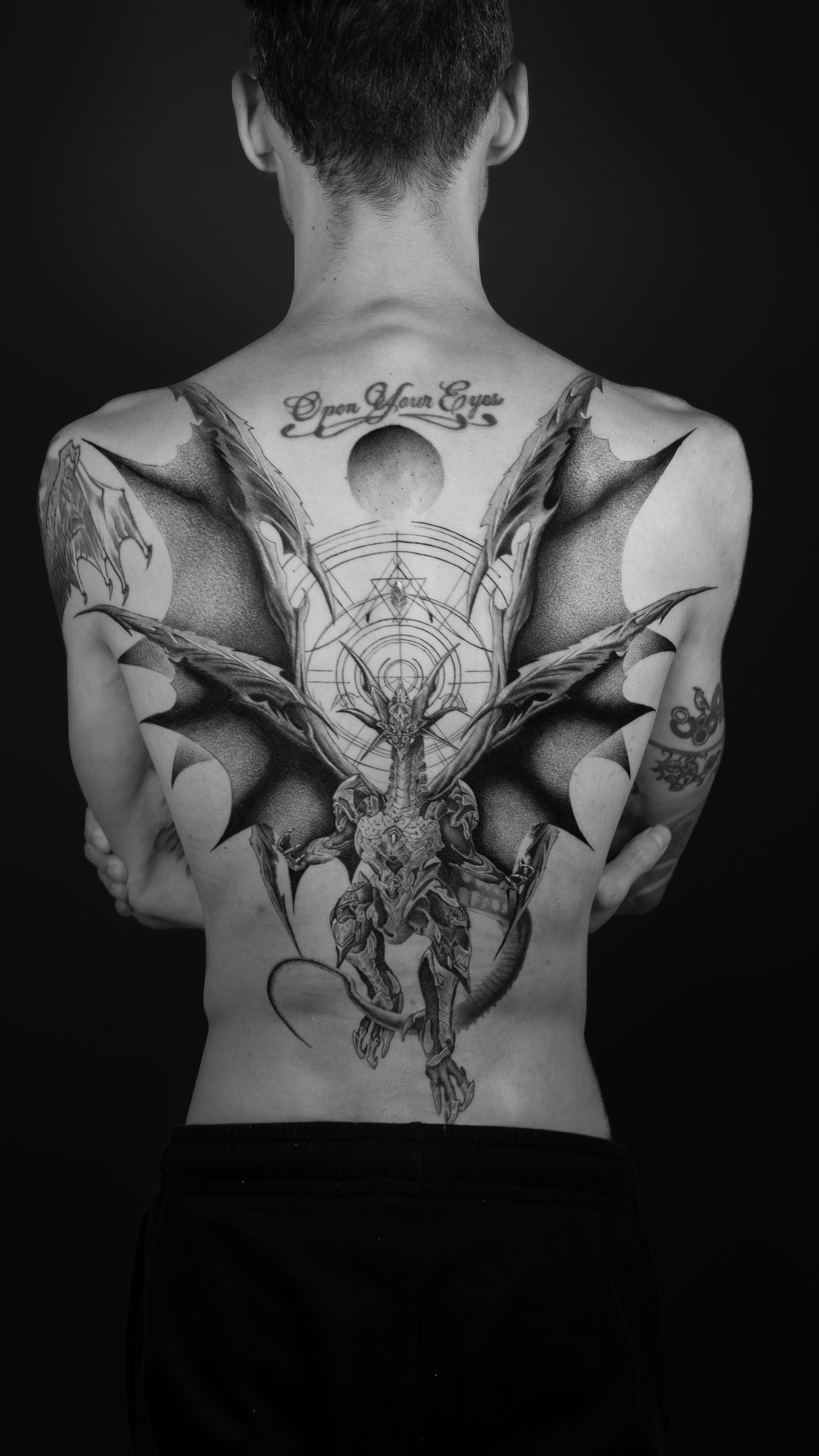 His style blends artistic exploration with technical precision, resulting in tattoos that are designed not just to look good, but to age beautifully and feel right on the body.